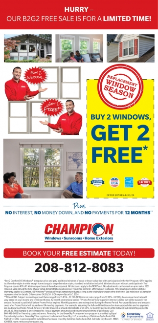 Apr 03, 2024. Champion Windows - Sunrooms - Home Exteriors Home Improvement Ads from HJ News