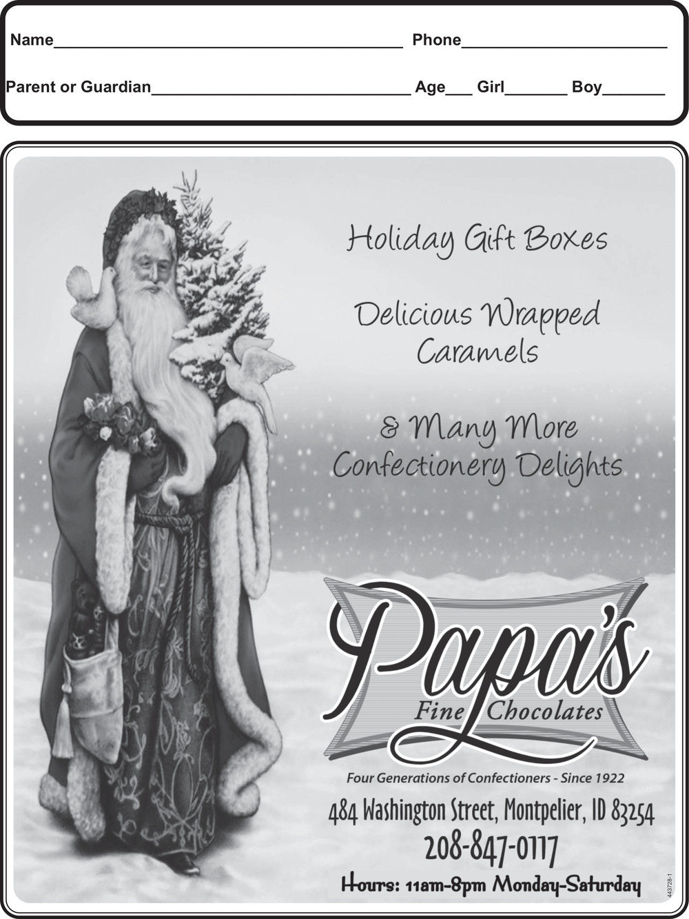 Ads for Papa's Fine Chocolates in Montpelier, ID