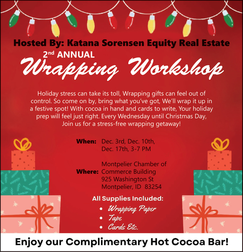 Ads for Wrapping Workshop (Dec. 3 & 17, 2025) in Montpelier, ID