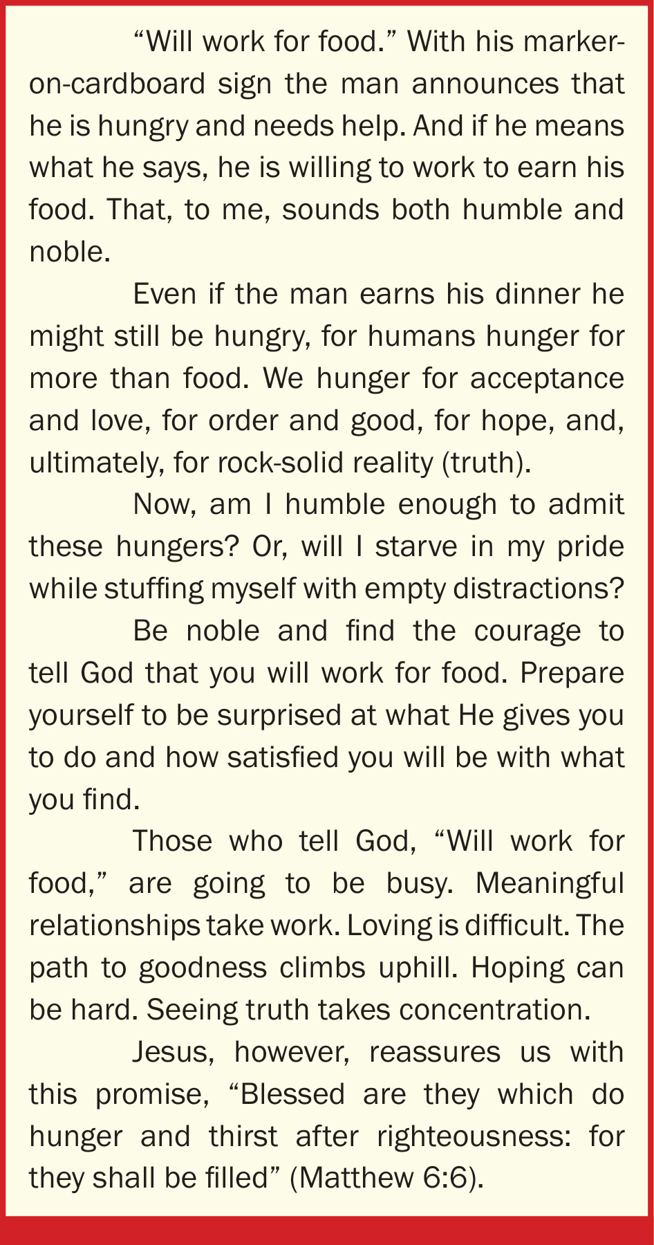 "Will work for food"