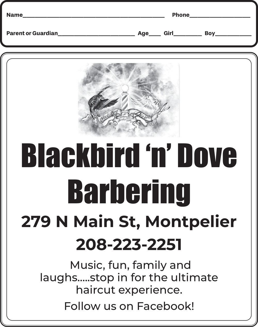 Ads for Blackbird 'n' Dove Barbering in Logan, UT