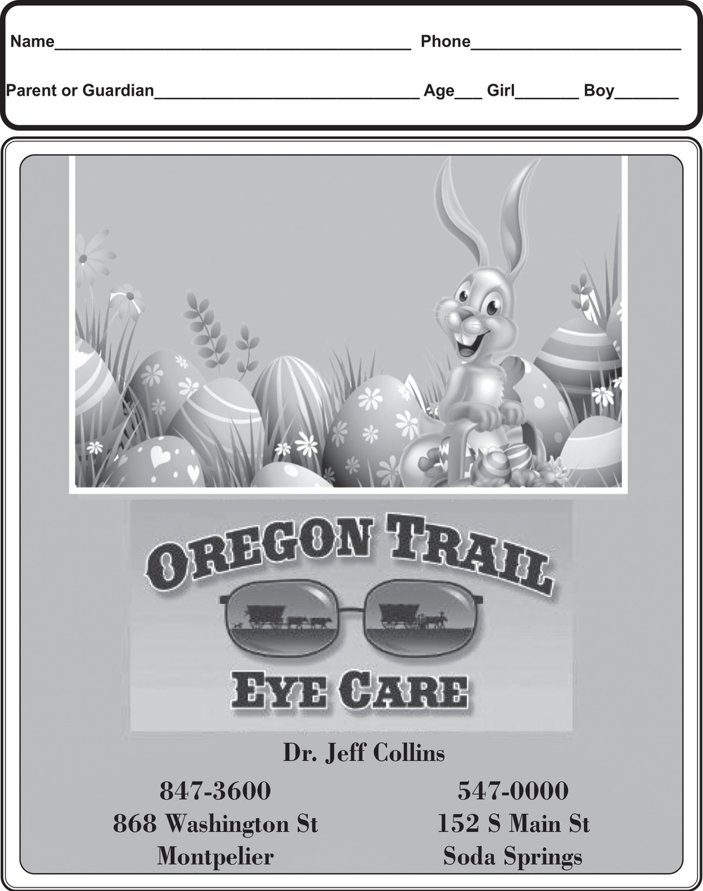 Ads for Oregon Trail Eye Care in Soda Springs, ID