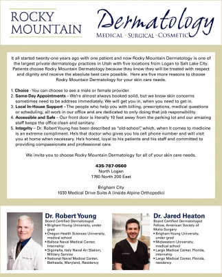 Ads for Rocky Mountain Dermatology in North Logan, UT