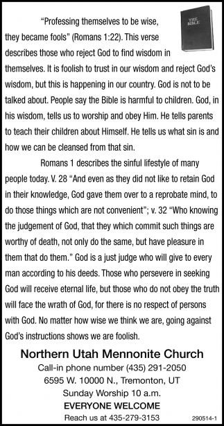 Oct 12, 2022. Northern Utah Mennonite Church Church Ads from HJ News